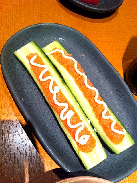 胡瓜の辣油明太マヨ乗せ